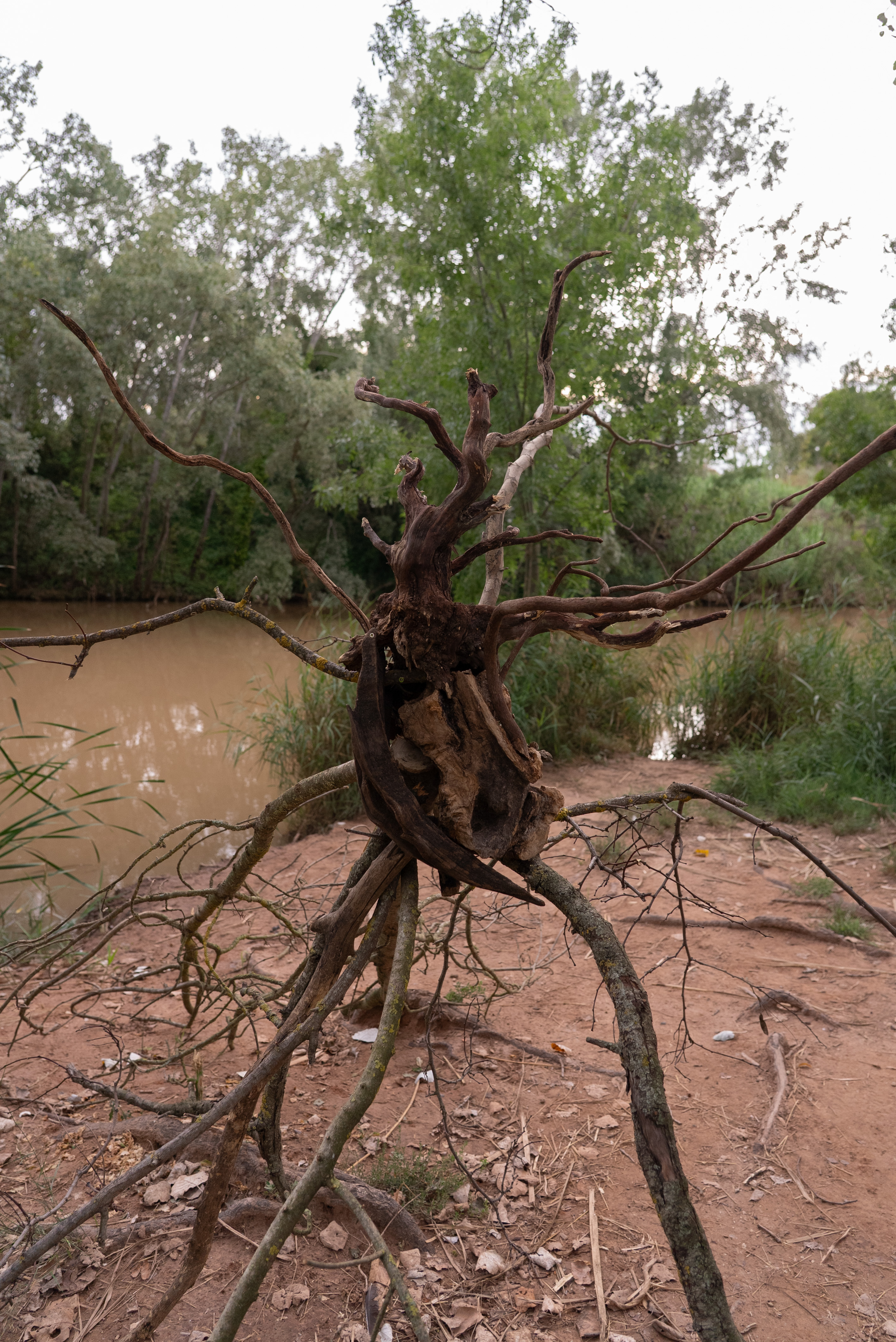 Obra realizada con materiales naturales del río, simboliza la fuerza y la riqueza invisible del agua y la naturaleza. Invita a detenerse, escuchar y conectar con el silencio vivo de la ribera, recordando que formamos parte de este ciclo natural. Una llamada a la contemplación y al respeto por el paisaje que nos rodea.